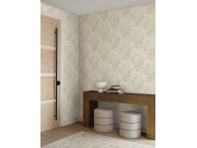 Šedo-béžová vliesová tapeta na zeď, stříbrné metalické větvičky.