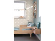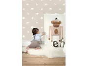 Béžová dětská vliesová tapeta, motivy kytiček a zajíčků. Tapeta má látkovou texturu, je vhodná do dětského pokojíčku pro nejmenší děti.