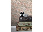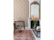 Světle béžová vliesová tapeta na zeď, květinový vzor v odstínech růžové a hnědé.