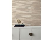 Béžová vliesová tapeta na zeď, kovově lesklé zlaté vodorovné pruhy.