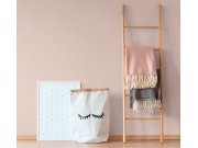 Béžová vliesová tapeta, bílé puntíky. Tapeta vhodná nejen do dětského pokojíčku.