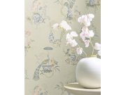 Jemně strukturovaná, romantická vliesová obrazová tapeta na zeď, rostlinné motivy, květiny, ptáci. Rozměr tapety 106x280cm, 2díly 53x280cm.