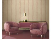 Luxusní vliesová tapeta s vinylovým povrchem s výraznou hrubou strukturou v béžové barvě se zlatými a měděnými pruhy s metalickými odlesky.
