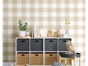 Béžovo-bílá károvaná vliesová tapeta na zeď.