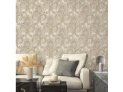 Luxusní vliesová tapeta s vinylovým povrchem, květinový ornamentální vzor, odstíny pololesklé světle béžové a bronzové. Foto interiéru je pouze ilustrační - odlišné barvy.