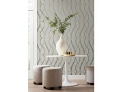 Luxusní béžovo-stříbrná tapeta na zeď s geometrickými ornamenty. Foto interiéru je pouze ilustrační - odlišné barvy.
