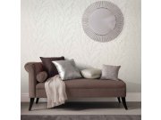 Luxusní bílá / ecru vliesová tapeta s vinylovým povrchem, rozdílné textury a odlesky tvoří efektní vzor.