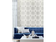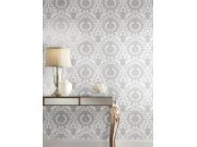 Šedobílá předklížená zámecká tapeta na zeď DM5036, Damask, York