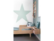Vliesová obrazová tapeta na zeď, bílá tapeta s mentolově zelenou hvězdou.