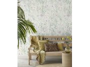 Vliesová tapeta na zeď s vinylovým povrchem a motivem rostlin a květů na bílém podkladu.