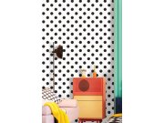 Hladká bílá vliesová tapeta na zeď, černé puntíky. Puntíky cca 4,5 cm. Foto interiéru je pouze ilustrační.