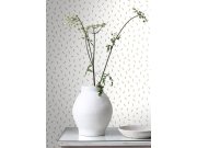 Vliesová metalická krémová tapeta s matnými bílými puntíky.