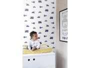 Tapety Yara » Tapety dle materiálu » Vliesové tapety » Bílo-modrá vliesová tapeta pro kluky Auta, vrtulníky 137321, Little Bandits, Esta