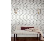 Bílá vliesová tapeta na zeď, metalické béžové, zlaté a stříbrné linie.
