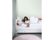 Tapety Yara » Tapety dle materiálu » Vliesové tapety » Bílo-zelená vliesová tapeta na zeď, geometrický cik cak vzor 128858, Little Bandits, Esta