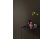 Černá vliesová tapeta na zeď, proplétané bronzové linie tvoří 3D geometrické vzory.