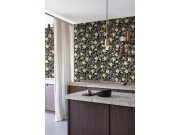 Černá hladká vliesová tapeta na zeď, vzor lučních květin v odstínech zelené, žluté, modré a hnědé. Co vás zaujme: vyrobeno s ohledem na udržitelnost a ekologii. Design: klasický, květinový. Úroveň tapetování: pro začátečníky. Země původu: Holandsko.