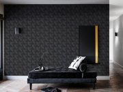 Luxusní vliesová tapeta s vinylovým povrchem, pololesklá černá, 3D geometrický vzor. Foto interiéru je pouze ilustrační - odlišné barvy. Co vás zaujme: textura, kvalita zpracování, šíře role. Design: 3D, grafický. Úroveň tapetování: pro začátečníky. Země