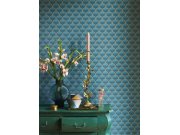 Vliesová tapeta na zeď s vinylovým povrchem se zámeckým ornamentálním vzorem v černých a modrých odstínech.
