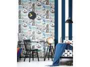 Tapety Yara » Tapety dle materiálu » Vliesové tapety » Černo-bílá vliesová tapeta s pruhy, 2159, Friends & Coffee, Cristiana Masi by Parato