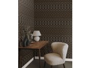 Černá vliesová tapeta na zeď, hnědý geometrický vzor.