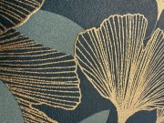 Černá vliesová tapeta s vinylovým povrchem, motivy zlatých a zelených/khaki listů Ginkga.