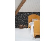 Vliesová, černá vliesová s bílým rostlinným motivem.