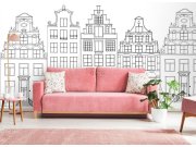 Černobílá vliesová tapeta, kreslené historické domy. Díl 2 - lze navázat se vzorem 158833 - viz foto.