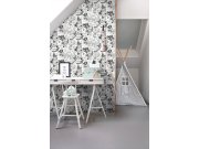 Vliesová tapeta na zeď, černý květinový vzor na bílém podkladu.