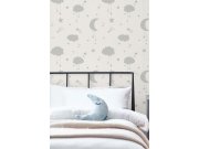 Tapety Yara » Tapety dle materiálu » Vliesové tapety » Dětská bílo-šedá vliesová tapeta s mráčky a hvězdičkami, 118332, Next