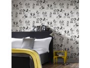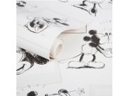 Papírová, dětská, černobílá tapeta s Mickeym a Minnie.