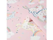 Dětská růžová vliesová tapeta s duhami a jednorožci, 118328, Next