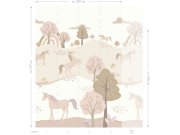 Vliesová obrazová tapeta s lesními zvířátky. Tapeta má navazující vzor, pokud potřebujete pokrýt širší stěnu, stačí přikoupit další kus (sadu 5 pruhů). Jednotlivé pruhy samostatně objednat nelze. 5 dílů 50x279cm. .