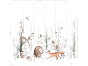 Vliesová obrazová tapeta s lesními zvířátky. Tapeta má navazující vzor, pokud potřebujete pokrýt širší stěnu, stačí přikoupit další kus (sadu 5 pruhů). Jednotlivé pruhy samostatně objednat nelze. 5 dílů 50x279cm.