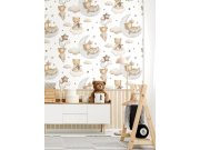 Dětská vliesová tapeta na zeď, béžová, hnědá, medvídci, hvězdičky a balony, 4401, Momi, Parato by Cristiana Masi