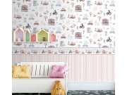 Vliesová tapeta na zeď - bílý podklad, motivy města v tlumených barvách pro nejmenší děti. Snadno kombinujte se souvisejícími tapetami a bordurami.