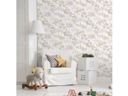 Bílá vliesová tapeta na zeď, motivy zvířátek z Afriky a rostlin. Foto interiéru je pouze ilustrační.