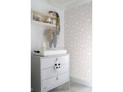 Dětská vliesová tapeta se zvířátky - šedo-stříbrný podklad, zvířátka s metalickým perlovým leskem.