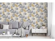 Krémová vliesová tapeta na zeď, vzor listů. Tapeta je vhodná do obývacího pokoje, ložnice, nebo pracovny.