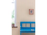 Netradiční vliesová tapeta s pruhy v odstínech krémové, světle béžové a růžové. V růžových pruzích ražený drobný vzorek. Snadno kombinovatelná se souvisejícími tapetami.