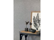 Vliesová, tmavě šedá tapeta s drobnými stříbřitými třpytkami a prosvítajícími lesky.