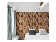 Moderní geometrická vliesová tapeta v hnědých, béžových a okrových tónech.