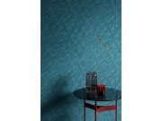 Luxusní modrá vliesová tapeta s vinylovým povrchem, plastický geometrický vzor s metalickým pololeskem. Foto interiéru je pouze ilustrační - odlišné barvy.