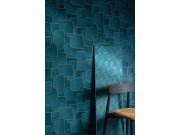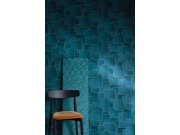Tyrkysová geometrická vliesová tapeta, látková textura 45244, Feeling, Emiliana