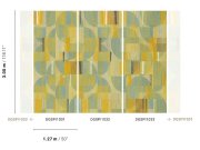 Geometrická vliesová obrazová tapeta v odstínech zelené, žluté a oranžové , hrubší látková textura. Pro větší šířku lze kombinovat se vzory DGSPI1031 a DGSPI1032 - viz foto