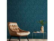 Tyrkysová vliesová tapeta na zeď, geometrický vzor, efekt matu a metalického pololesku.