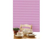 Vliesová, růžová tapeta s bílým geometrickým vzorem.