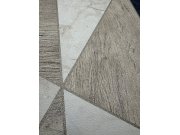 Geometrická vliesová tapeta na zeď, odstíny hnědé, béžové a šedočerné. Motiv dřeva a mramoru, béžové metalické obrysy. Prostřih 0 nebo 38,8cm.