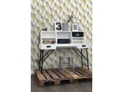 Vliesová tapeta s geometrickým vzorem v bílých, šedých a okrových odstínech.