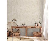Geometrická vliesová tapeta na zeď, barva béžové, zlaté žíhání.